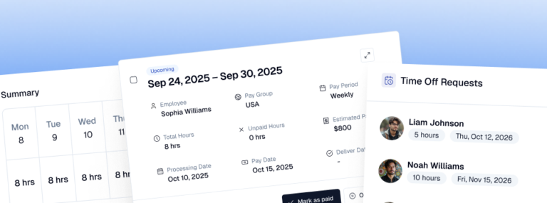 - Approvers see time-off requests alongside timesheet approvals in unified queue